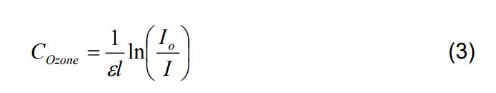 紫外吸收技術從根本上測量濃度,而不是混合比。以分子/cm3 為單位的濃度由 Beer-Lambert 定律給出: